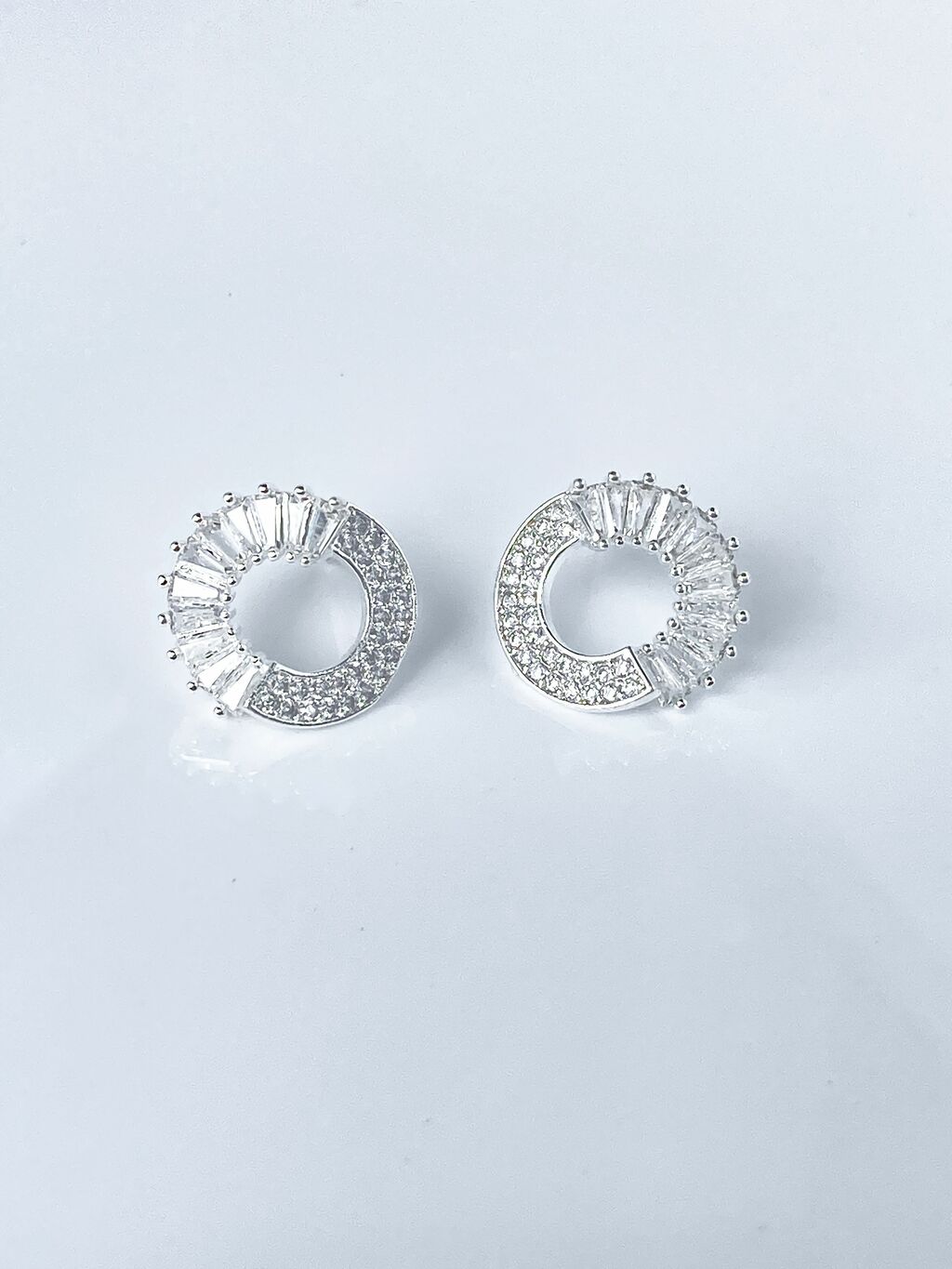 O Brinco Círculo Celestial combina elegância e sofisticação em um design único. Com um formato de círculo vazado, ele é cravejado com zircônias cúbicas e navetes, que criam um brilho impressionante e um efeito luminoso deslumbrante.